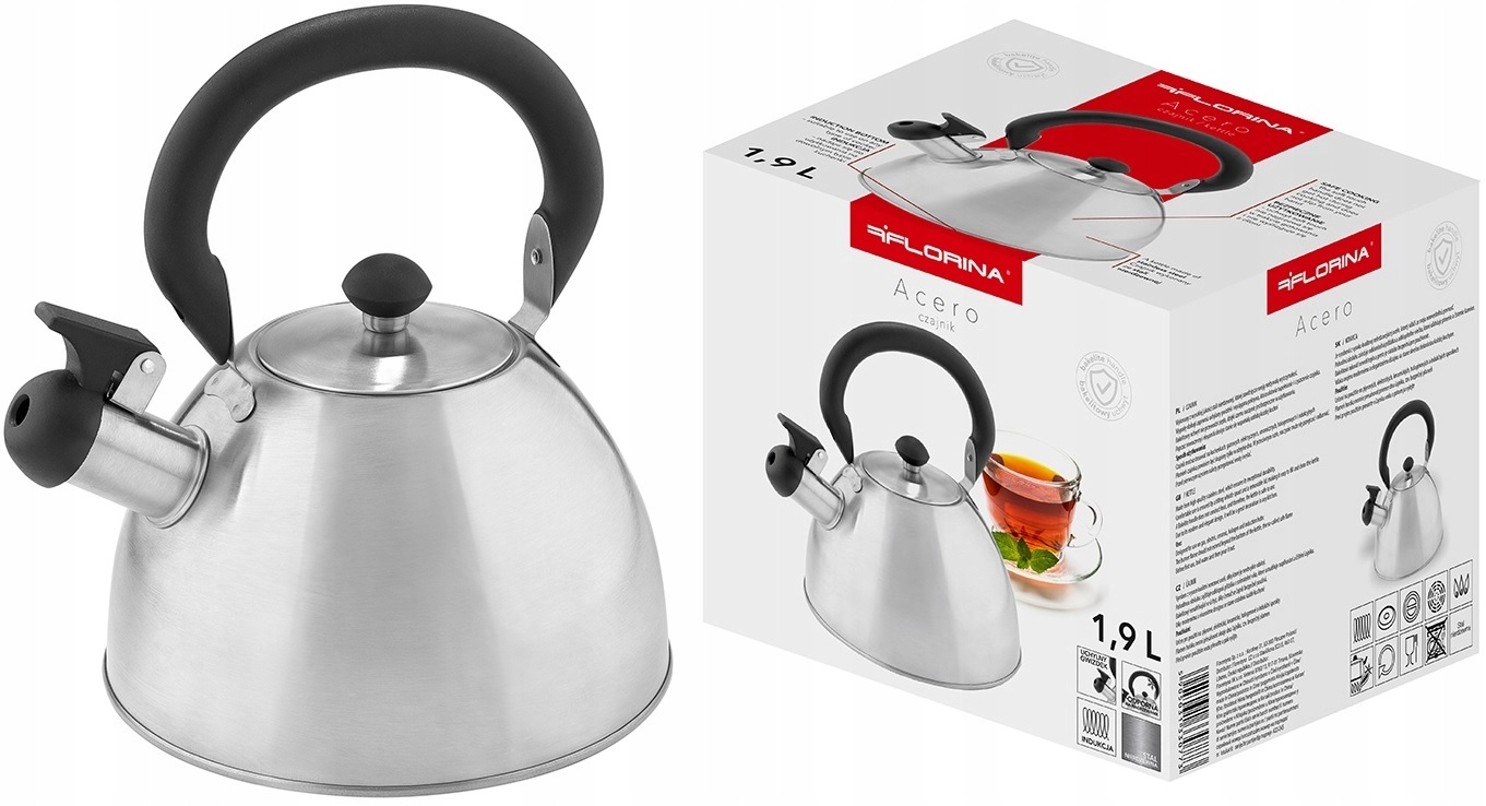 CZAJNIK FLORINA ACERO 1,9 L – TRADYCYJNY STALOWY CZAJNIK Z GWIZDKIEM
