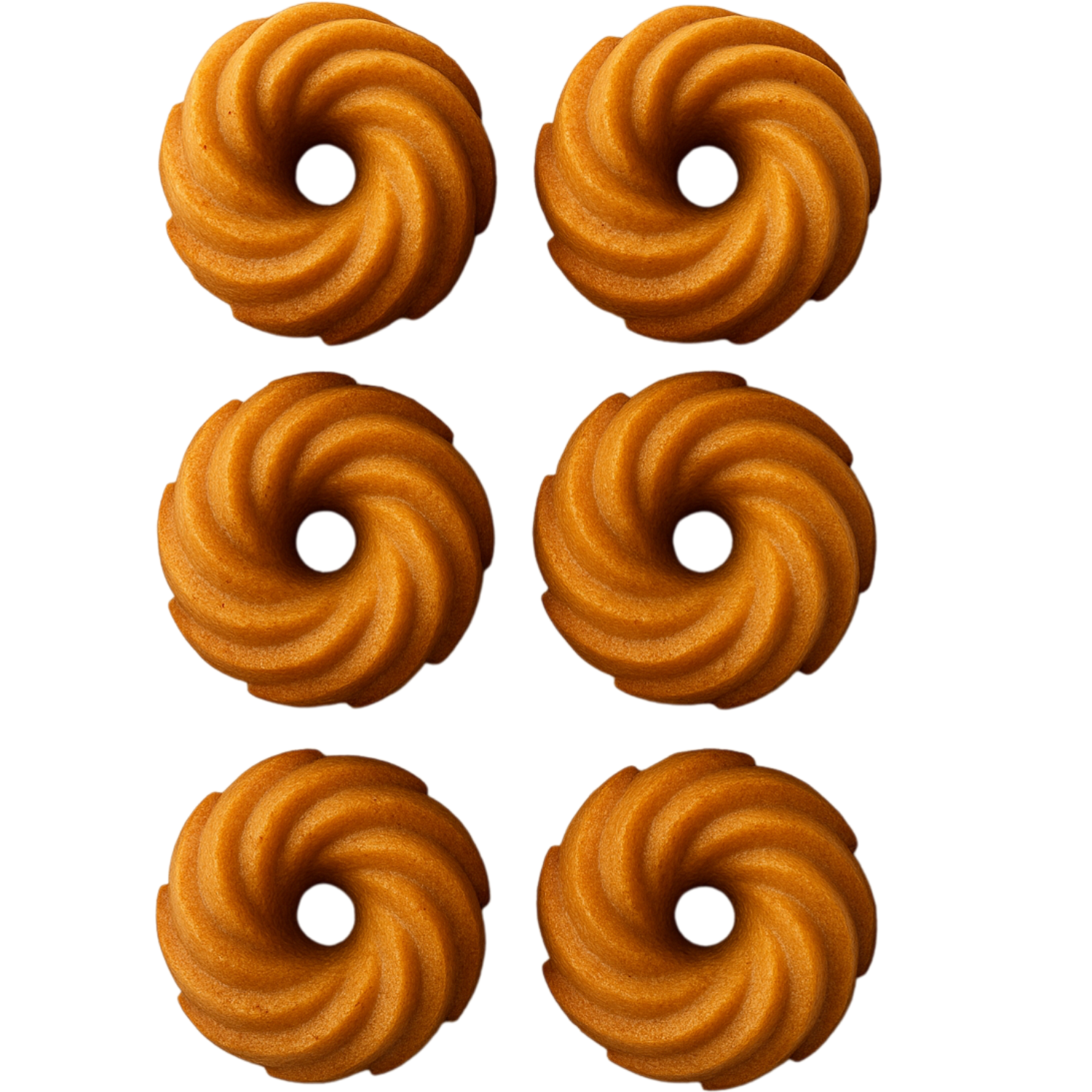 Forma o wymiarach 28 × 17 × 3 cm posiada 6 gniazd o wymiarach 7 × 3 cm. Każdy wypiek zyskuje charakterystyczny spiralny wzór, który przyciąga wzrok i podkreśla estetykę deseru.